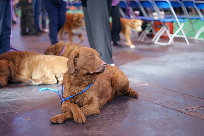 The history of retrievers is the most murky of all, but all appear to descend from the St. John's Water Dog, a Canadian breed most likely bred from dogs imported from Europe, and resembling today's Labrador Retriever. The longhaired dogs were bred with mastiffs to create the Newfoundland, and taken back to Britain in the 1800s to create the British retrievers - the Flat-coat, Golden and probably the Curly-coat. The shorthaired dogs became the Labrador and Chesapeake Bay Retriever.