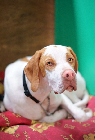 due to mastiff blood - probably from the Great Dane or similar. Dilution is certainly absent from all other pointers, and from spaniels and setters too.