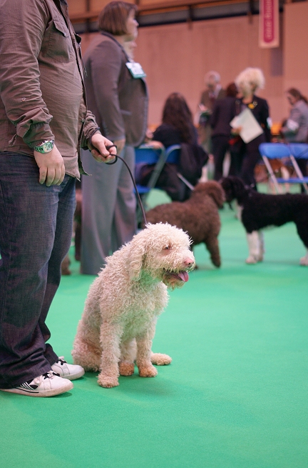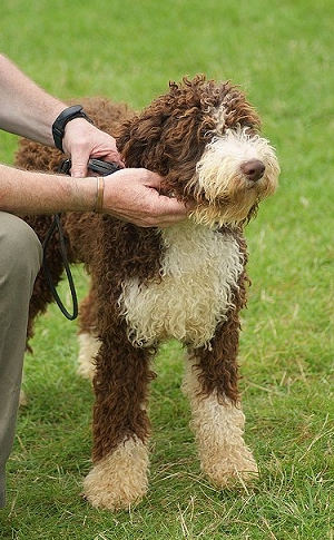 Spaniels probably descend from the Spanish Water Dog or the Lagotto Romagnolo, which in turn are thought to have been bred from herding dogs (of a type similar to the Bergamasco). The original spaniels resembled today's curly-coated water dogs, such as the Barbet, and land spaniels (with straighter coats) were bred later. Some of the larger spaniels were crossed with pointers to create setters.