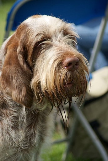 It is known that pointers descend from Spanish and Italian scenthounds, with the Bracco Italiano and Perdiguero de Burgos being the most ancient types. Spanish pointers were imported to Britain in the 1600s, and bred with other breeds such as the Greyhound, producing the more elegant breeds seen today. Wire-haired pointers may descend partly from the Italian Spinone, which is more or less a rough-coated version of the Bracco Italiano.